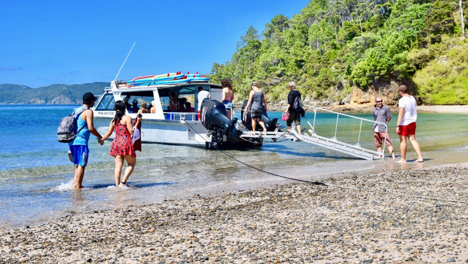 With a maximum of 20 guests on board, we specialise in providing a personalised and interactive tour through the Bay of Islands. Our custom designed boat enables us to take you to the most secluded and unfrequented beaches allowing you to step straight from boat to beach without getting your feet wet! With activities suitable for all ages, we provide our guests with an experience like no other! Free snorkeling gear and stand-up paddle boards provided to use throughout the day, two island stopovers, complimentary morning tea and informative commentary. This is the one and only island getaway.
