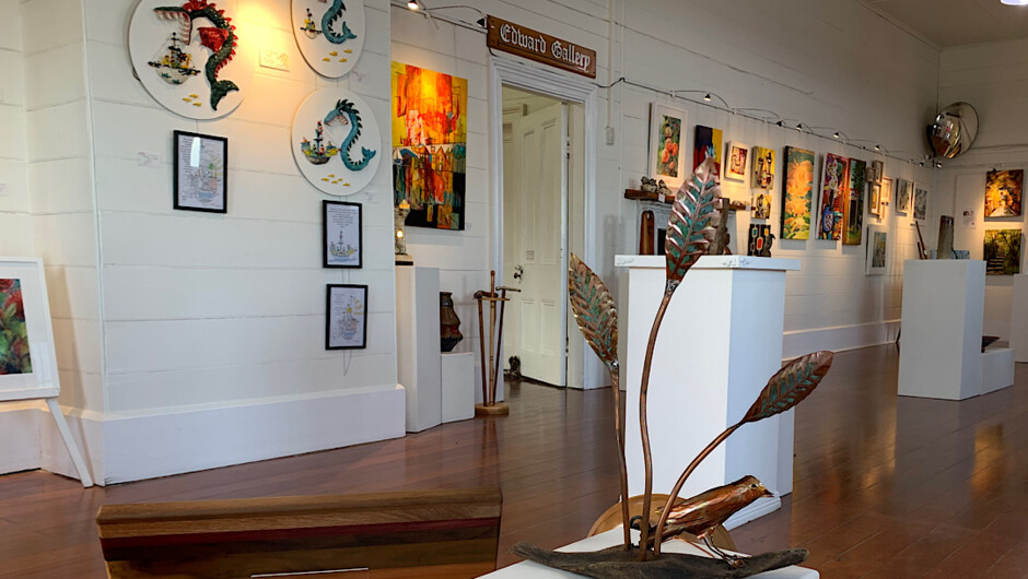 You will find our “gallery by the sea” in the historic Thames North School, on the scenic coast road just 3 minutes north of Thames town. 2023 saw the gallery celebrate their 50th anniversary, and enjoyed a reunion of past and present volunteers. The gallery is meticulously curated to create a new experience for regular visitors, and unique and interesting arts for the not so regular visitors. There are monthly member’s exhibitions (featuring at least 2 creative mediums) seasonal exhibitions, workshops and even a Christmas Market (keep up to date on the socials) held on the expansive grassed area beside the gallery.