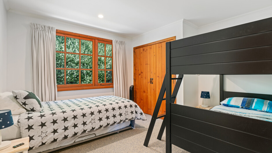 This vibrant cottage is packed to the brim with charm, character and all the bells and whistles needed for a guaranteed, fuss-free getaway. As soon as you step inside, the practical furnishings with pops of eclectic décor, a toasty fireplace and a snug open-plan living and dining area bring this gorgeous home to life. Open the wooden French doors and take your living outdoors, where the sun-soaked deck and garden area will provide you with the perfect spot to sit back and enjoy an Otago wine while the kids play in the backyard.