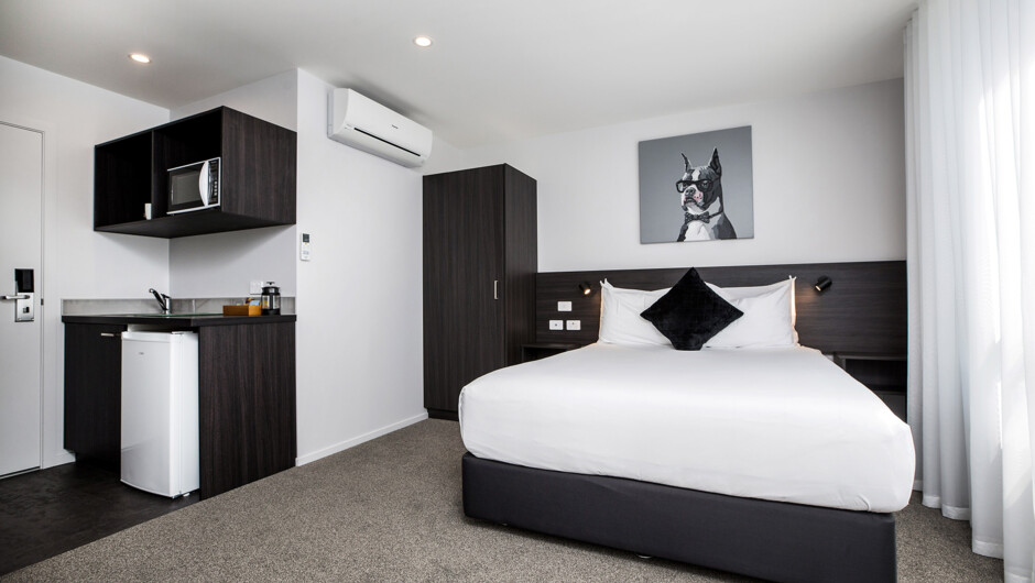 The Metrotel is New Plymouth’s inner city modern motel. We’ve designed it with our guests in mind and have included amenities like spacious rooms, self-contained kitchens, free WIFI, a selection of Sky TV and Freeview channels, self-service guest laundry and free off-street parking. We offer restaurant charge-back facilities to a selection of establishments. We are located directly in the heart of the city so it is a convenient walk to many of the local attractions, restaurants, bars, cafes and businesses.
