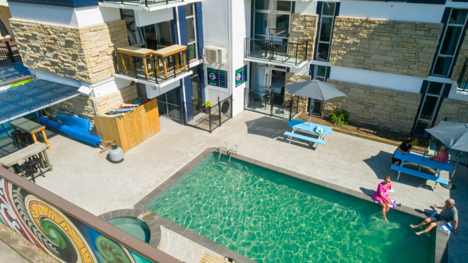 This Sleepery features co-working and co-living spaces that create a sense of belonging along with a thermally heated pool to make your trip special in every way. This newly refurbished property is super conveniently located right in Rotorua’s City Centre, at 1286 Arawa Street which is directly opposite Kuirau Park. This is the perfect setting with an abundance of geothermal activity, sporting facilities and natural beauty. We are a short 3-minute stroll away from the city centre where all the cafes, restaurants, bars, shopping & retail.