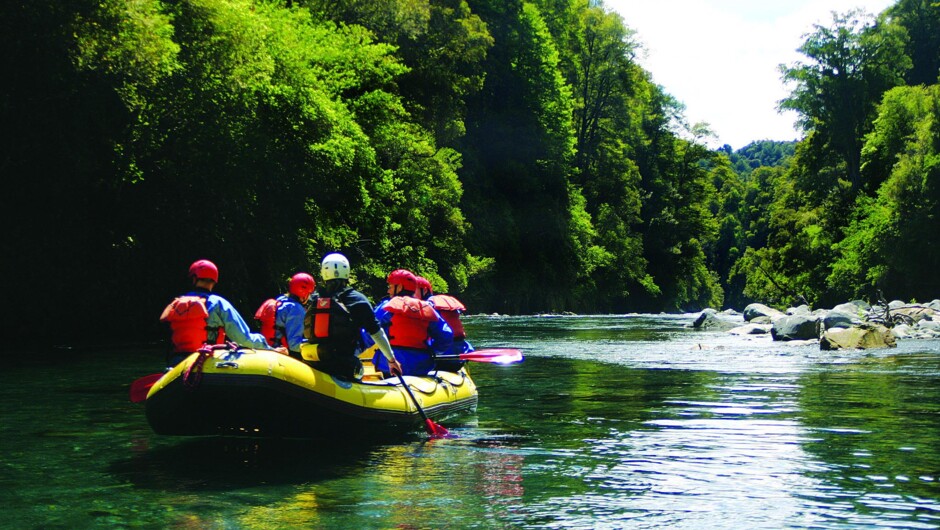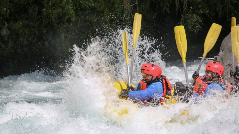 This half-day Tongariro River journey is one of the best rafting adventures in New Zealand. The rapids are Grade 3, which makes this an ideal adventure for expert or first-time rafters alike. In 2 hours you'll navigate over 60 roller coaster rapids with an expert guide at the helm. We'll show you parts of the river that can only be accessed by raft so you’ll see plenty of unspoilt wilderness and may catch a glimpse of the endangered Whio ( Blue Duck). Our guides are fully qualified professionals (and super friendly) and our gear is top quality. All you need is swimwear and a towel - we provide everything else you need.