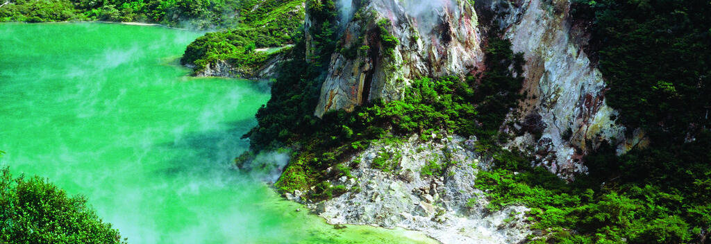 ワイマング火山渓谷では驚異の地熱地帯を間近に体験できます。クレーターの遊歩道を歩くセルフガイド式のエコツアーや、ピンク・テラスとホワイト・テラスのあるロトマハナ湖遊覧クルーズ、カヤックで湖を探索し、蒸気の立ち上る崖に迫るガイド付きツアーなどがあります。
