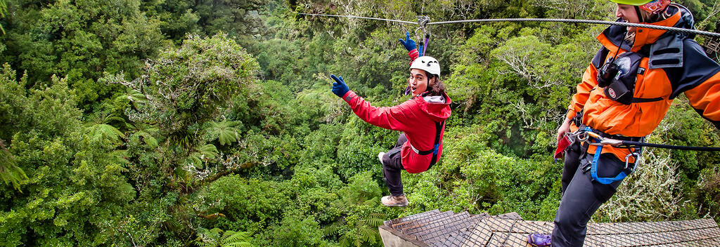 ロトルア・キャノピー・ツアーズのジップラインで先史時代の原生林をめぐる体験はいかがですか。地上20mの高さの吊り橋を渡り、木々の中を歩きます。夜に何をしようか迷っているなら、レッドウッド・ツリーウォークへ。レッドウッド・ナイトライトのツアーで、色と光の魅惑的な世界に足を踏み入れてみましょう。家族全員で楽しめるアクティビティです。