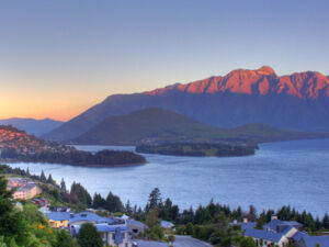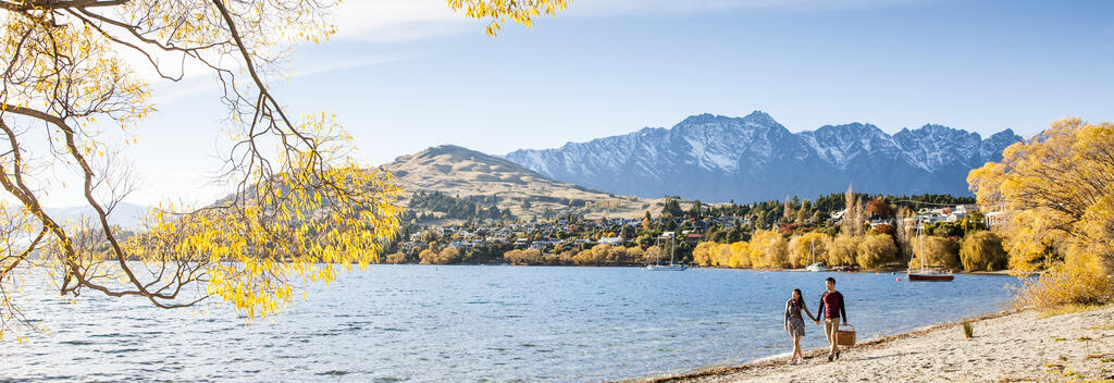 ニュージーランドで3番目に大きな湖、クィーンズタウンから望むことのできるワカティプ湖は、一つの氷河が削った谷間に水が溜まり形成されたため稲妻のような形状をしています。湖の両側には最高峰アーンスロー山(Mount Earnslaw、2819メートル)をはじめとする高い峰々が連なっています。 ワカティプ湖はその変わった形状のために干満(静振と呼ばれる現象)が発生し、ワカティプ湖の動きは一般よりもかなり大きく25分程の間隔で繰り返し約10センチメートルの上下を繰り返しています。マオリ伝説はこの現象を、湖の底に眠ると信じられたマタウという名の巨人の鼓動として伝えています。 TSSアーンスロー号はワカティプ湖を毎日運航しています。赤く塗られた12メートルの煙突、白い船体、カウリ材を用いたデッキ、そして古い蒸気機関を備えたこの船は、ニュージーランドを代表する景色には欠かせない蒸気船です。 ワカティプ湖では年間を通してトラウト・フィッシングを楽しむことができます。特にグリーンストーン川(Greenstone River)とロッシー川(Lochy River)が湖に流れ込む地点は魚影が濃く、釣果が望めます。また、夏になると湖岸の浜では遊泳を楽しむこともできます。