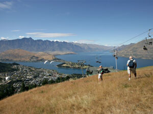 クィーンズタウンから出発する際は、ボブズ・ピークの頂上までゴンドラで行くことができます。その後、ベン・ローモンドの尾根に向かって進みますが、希望者は途中でベン・ローモンド山の頂上(標高1747m)に寄ることも可能です。上りはきついものの、サザンアルプスの絶景が見渡せます。