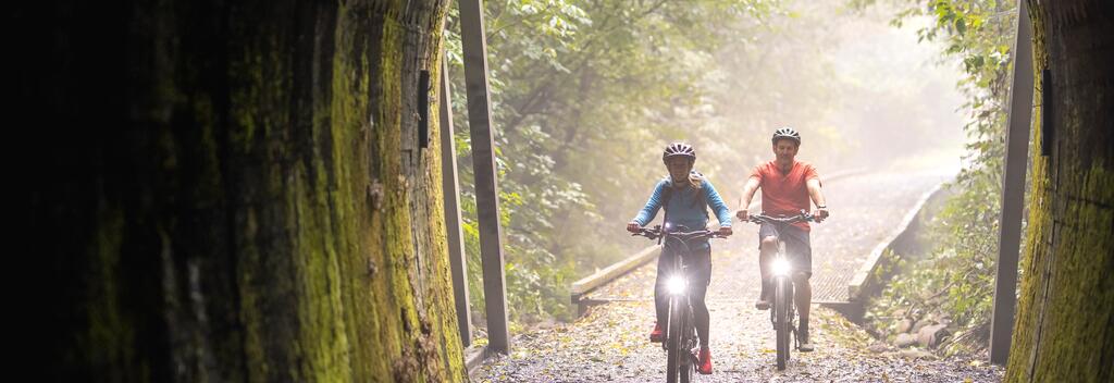 内陸方面へ進むと、ワイナリーの点在する田舎道になります。しばらくは絵のように美しい景色の中、昔の鉄道路線をたどります。その後、のどかな丘陵地帯の森に入り、スプーナーズ・トンネル(opens in new window)を通ります。モトゥエカ渓谷の山と渓谷、透き通った川の風景は絵のように美しく、自然との一体感が味わえます。