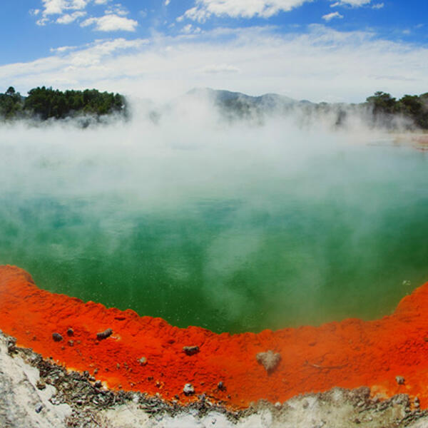 地熱地帯で究極の体験をするなら、ヘルズ・ゲートへ。地獄の門という名前の相応しいこの場所では、常に熱気や熱水がボコボコと沸き上がっています。ちなみにこの名前は、アイルランドの劇作家ジョージ・バーナード・ショーの表現に由来します。