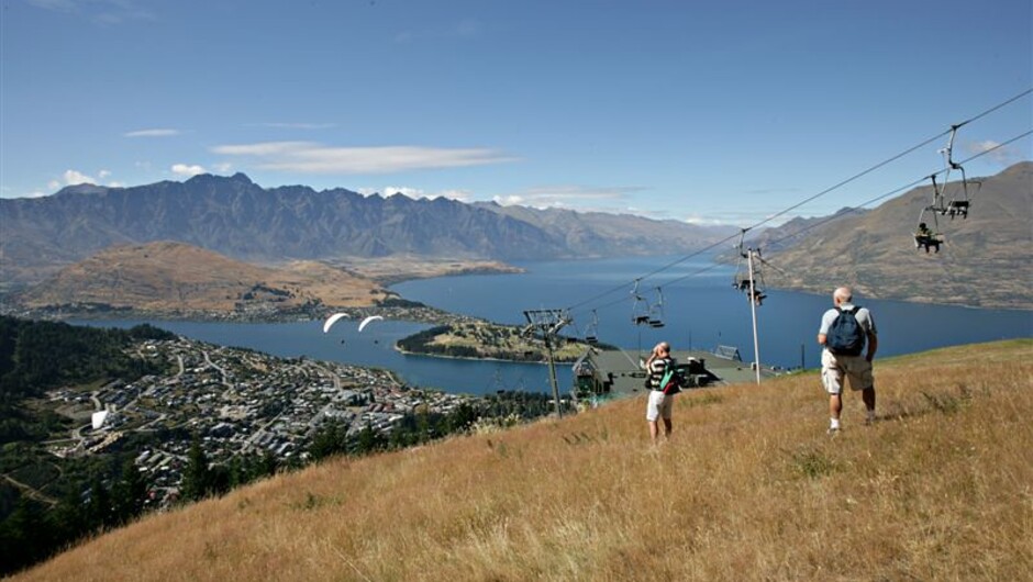 クィーンズタウン名物スカイライン・ゴンドラで頂上まで行き、市街地と周辺の山々の絶景を見渡しましょう。