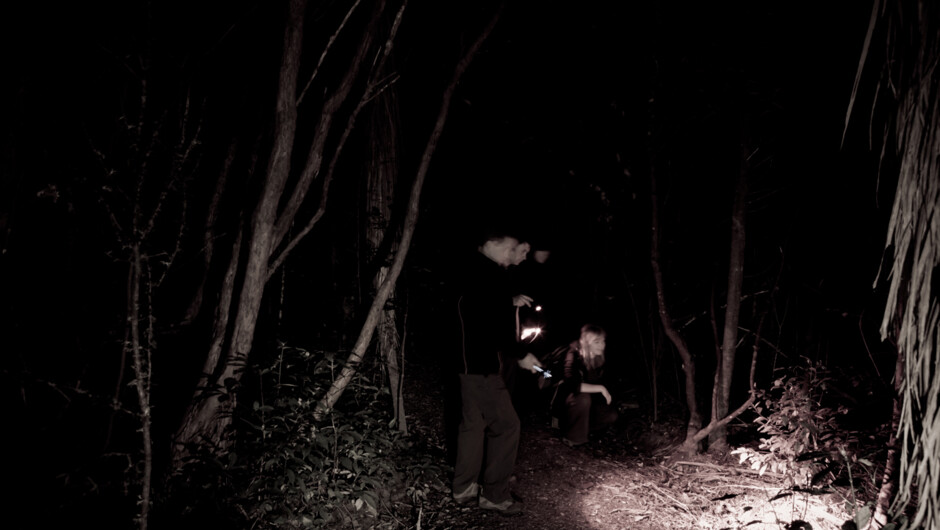 ガイドはライトを片手に野鳥たちの世界へニュージーランドの茂みの特徴的な光景と音を求めて私たちを連れて行ってくれるでしょう。