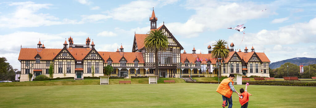 거버먼트 가든즈는 로토루아 중심에 있는 호숫가의 정원으로, 현지 마오리인들에게 전설적이고 역사적인 중요성을 지닌 전쟁터였다. 1800년대 말, 현지 마오리 부족이 "전세계인의 이익을 위해" 이 땅을 정부에 기증하면서 정원이 조성됐다. 나무 중에는 몸통이 여러 개로 뻗은 일본 전나무, 특이한 캘리포니아 레드우드 등 거목이 많다. 1908년, 뉴질랜드 정부는 이곳을 남태평양의 온천 명소로 개발한다는 계획 하에 튜더식 건축양식의 큰 온천장(Bath House)을 개장했다. 세계 각지에서 몰려온 온천객으로 붐비던 이 건물은 이제 박물관으로 바뀌어 그 당시 역사를 흥미로운 전시품으로 전해준다. 1930년대 초반에 화려하게 개장한 지중해식 블루 배스는 남녀가 같이 들어가는 것을 허용한 세계 최초의 온천 중 하나. 블루 배스는 스파테라피 보다는 사교용으로 이용됐다. 거번먼트 가든즈 마당에는 유명한 레이첼 풀이 있는데, 블루 배스라는 이름이 붙은 이유가 이 풀 색깔 때문이다. 그 외에도 연못지대, 진달래 길, 아름다운 장미원 등이 있다.