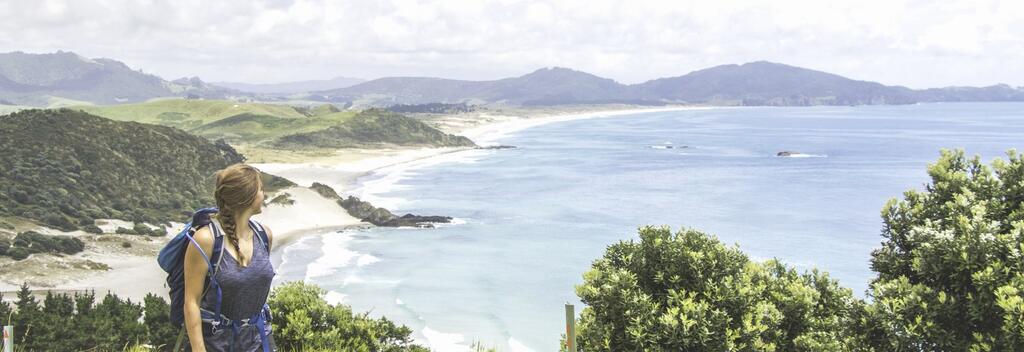 브림헤드 경관보호구의 우르크하르츠베이에서 오션비치까지 이어지는 고대 마오리 트레일을 따라 하이킹 즐기기.
