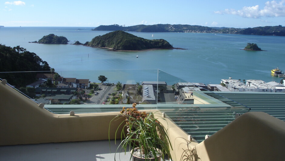 베이오브아일랜즈의 파이히아 중심지 바로 위에 있는 경관이 아름다운 고급 숙소입니다. 마을과 섬의 아름다운 전망이 있는 비앤비 및 시설완비형 아파트가 있습니다.