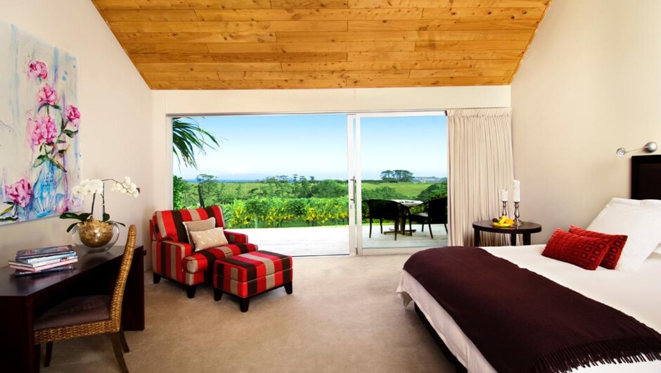 뉴질랜드 관광청으로부터 2010년 마타카나/오클랜드 북부 지역 우수 숙박업소상을 받은, 건축가가 지은 현대식 숙소. 최고의 편안함과 세련됨을 갖춘 고급 스위트룸이 포도나무에 둘러싸여 있습니다. 멋진 전망
