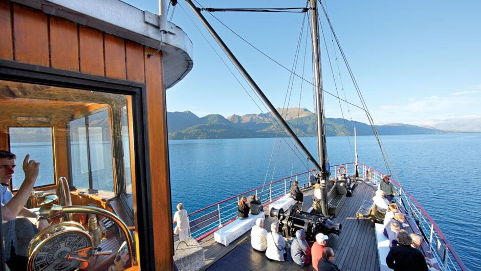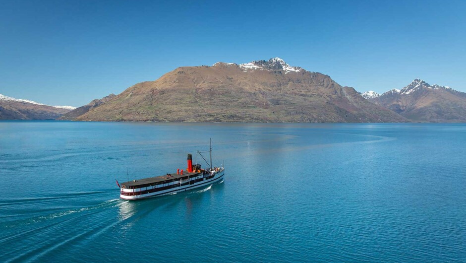 일명 ‘호수의 숙녀’라 불리는 크루즈를 타고 아름다운 와카티푸 호수를 항해하며 화부가 석탄을 연소실에 넣는 모습을 구경하고, 보일러의 열기를 느껴보고, 증기기관이 내는 소리를 듣는 경험을 할 수 있습니다.