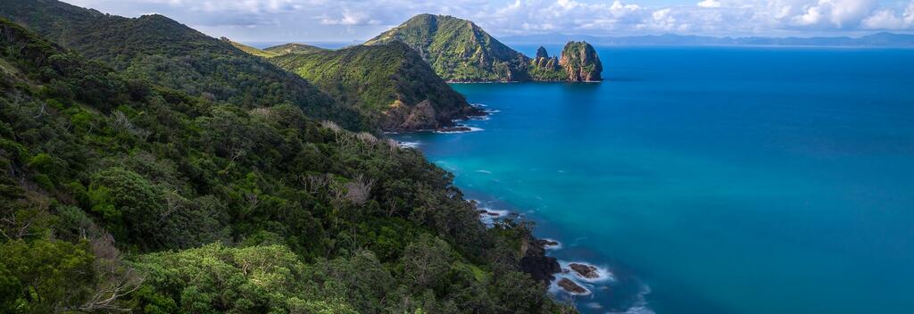 Passing beneath the shadow of brooding Mt Moehau, the track traverses pristine bush, farmland and coastline.