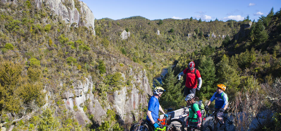 Ride through rich native bush and past towering volcanic cliffs on this epic cycle trail.