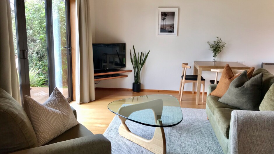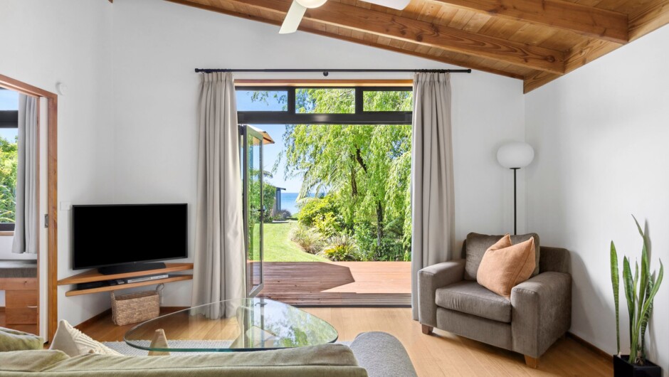 Stunning beachfront location on a quiet, sheltered, sandy beach. Enjoy a sense of space, privacy and seclusion on this 10 acre property with beautifully landscaped gardens and its own private beach. The five elegant one bedroom villas feature stylish, modern interiors with kitchens and double hydrotherapy spa baths. Options for a daily hamper of wholesome breakfast provisions & housekeeping service. Each villa has a private courtyard with a Weber BBQ and a large deck overlooking the water, enabling you to enjoy Nelson’s sunny climate and outdoor lifestyle. This romantic lodging is centrally located in Golden Bay - an area well known for its artisans and relaxed lifestyle.