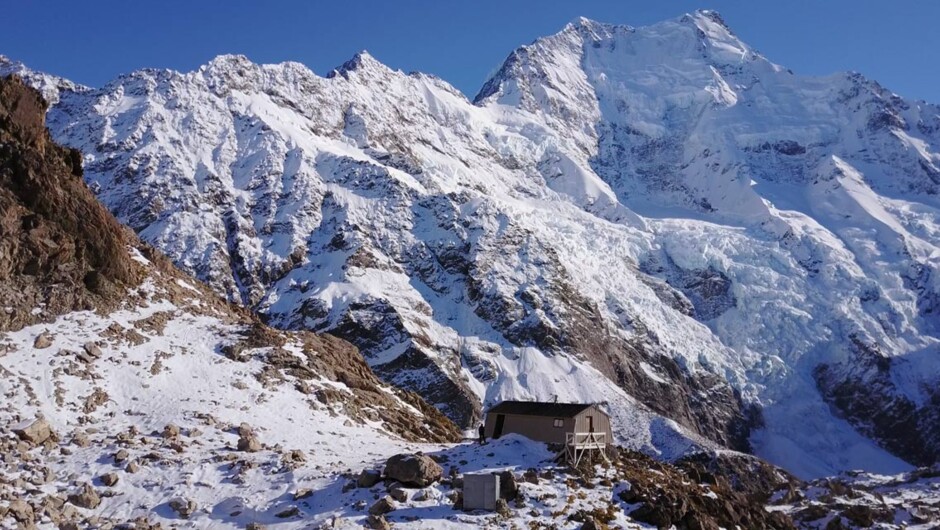 Climb up close to Aoraki Mt Cook on this 3-day challenging trek. Spend two nights at the cosy Caroline Hut straight opposite the 2000m high Caroline Face of Aoraki. Learn basic crampon and ice-axe skills and climb Kaitiaki Peak for stunning views.