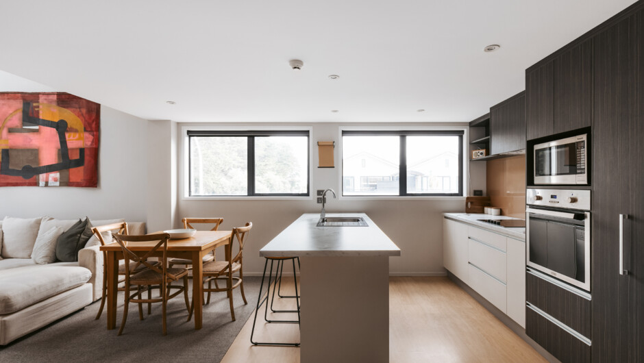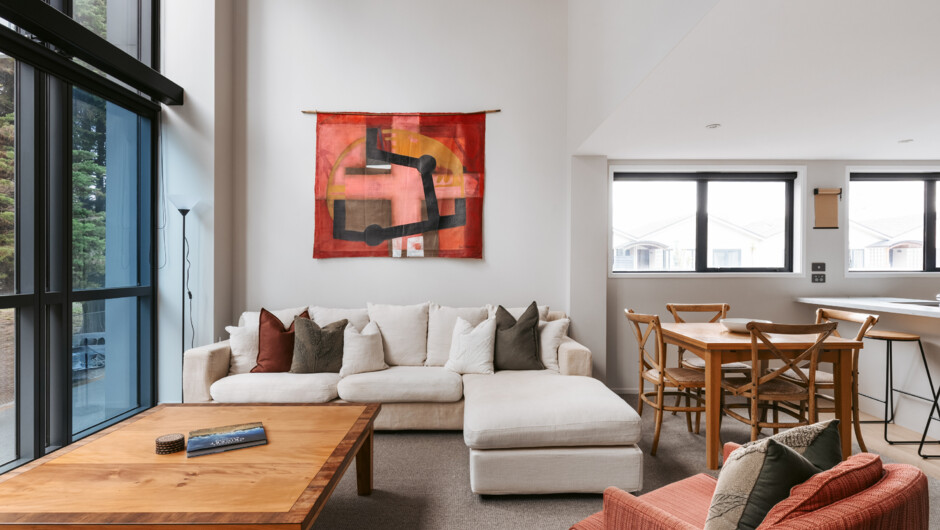 Step inside and you’ll find a beautifully appointed, urban-style loft that blends comfort and character across two levels. Downstairs features a spacious open-plan living, dining, and kitchen area - fully equipped for longer stays or weekend getaways. There’s also a convenient separate toilet on the lower level, complete with washing and drying facilities to make your stay that much easier.