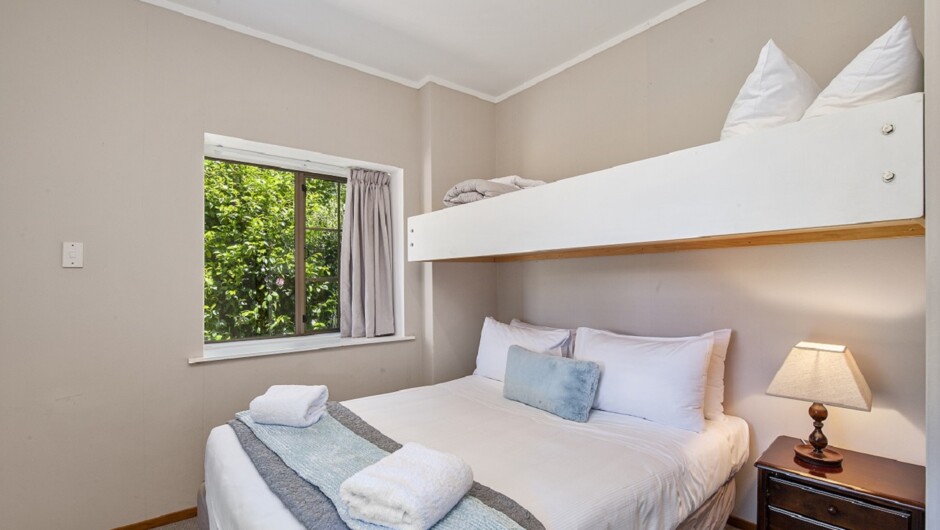 Bedding configuration 1x Super King, 1x Queen, 1x Bunk (Single over Queen, 1x Bunk (Single over Double), 2x Sofa beds. https://mystays.co.nz/about/terms-and-conditions/