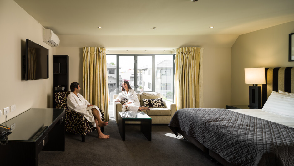 Carnmore Chateau Marlborough has 80 suites & apartments. All our suite options offer a selection of teas and coffee, plunger coffee and mini bar. Our Restaurant & Wine Bar, Quench, is relaxed and modern and offers a versatile dining experience serving delicious breakfasts and the reopening for dinner serving fresh local produce options and through summer we also offer a lovely outdoor dining area and poolside bar where you can enjoy a refreshing beer or a glass of local Sauvignon Blanc.