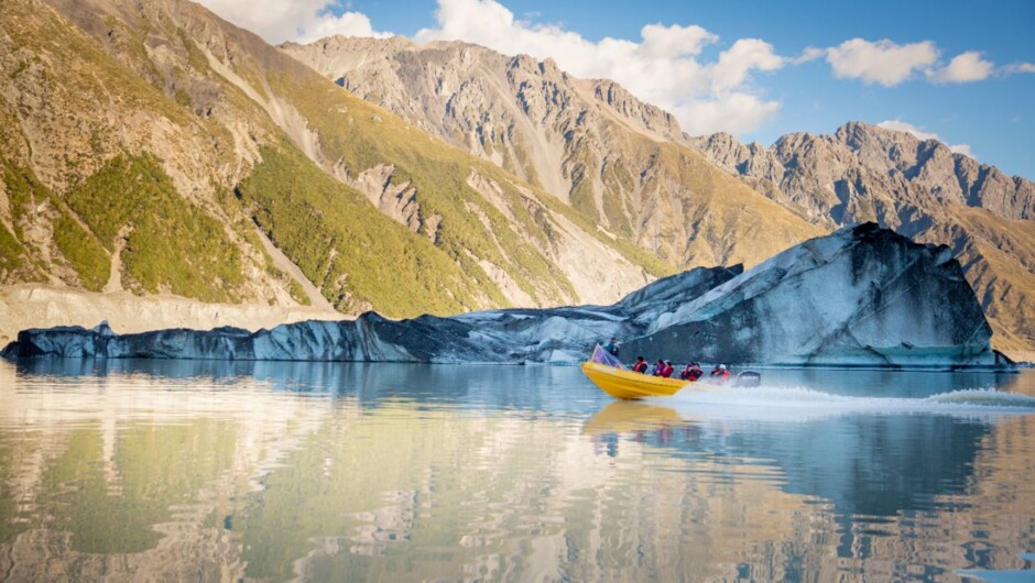 This is the only tour of its kind in New Zealand and is located in the heart of Aoraki/Mount Cook National Park. Cruise the Tasman Glacial Lake to view New Zealand’s largest glacier as you weave in and out of floating icebergs. Our tours will both thrill and educate you, as our passionate guides share their knowledge of the ever-changing glacial landscape. Reach out and touch a floating icebergs that are 1000’s of years old and take in the enormity of the terminal face of the Tasman Glacier. This is undeniably one of the most unique experiences in New Zealand.