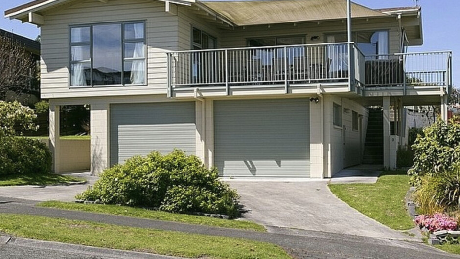 This Taupō holiday home features plenty of room for all of the family. There are two bedrooms featuring queen sized beds, including one with an ensuite, and anther bedroom which has a set of bunks. The living room suits everyone's relaxation needs, including a TV, video player, and a stereo. No need to worry about cooking meals at Golders Heights - the well-equipped kitchen features a dishwasher, microwave, and fridge/freezer. Shops and a play area for children are within walking distance and there are two court yards around the property. There's also a great deck in order to enjoy the sun, glass of wine and all.