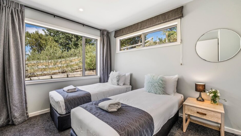 Located in beautiful Acacia Bay, less than 15 minutes from the hustle and bustle of town centre. Accommodating up to 10 guests with 4 bedrooms and 3 bathrooms including the self-contained loft which offers additional space for the grandparents, teens or second family. The downstairs level of the house boasts 2 bedrooms, 1 bathroom, large well-equipped kitchen with butlers pantry, living area with gas fireplace, dining area, laundry and drying room for wet snow gear. Head upstairs to the master bedroom with balcony, bathroom with walk in shower and separate bath, plus a second living area/sitting room with kitchenette. The self-contained loft has it’s own bathroom, drying room, well-equipped kitchenette, and can sleep up to 4 guests.
