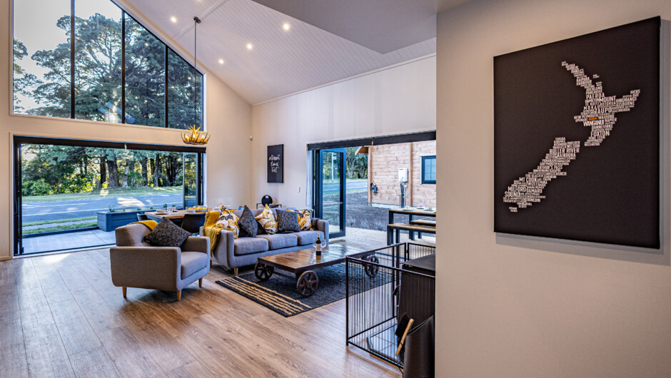 Feel immediately relaxed when you walk through the door here, with high ceilings, glass bi-folding doors and a carefully curated blend of rustic and contemporary furnishings making this the ideal home away from home. This is where your holiday begins. Imagine starting your day with a freshly brewed coffee from the Nespresso machine, then cosying up on one of the plush couches in the living area and planning your itinerary for the adventure-packed days ahead, all while you admire the gorgeous scenery listening to the morning birdsong.