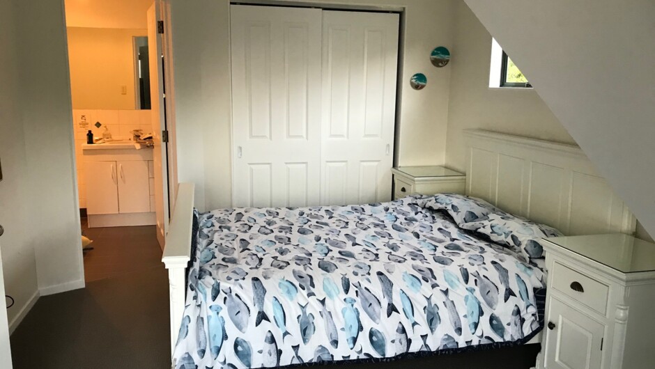 Very modern, comfortable and clean house 2 bedrooms, 2 bathrooms (ensuite from upstairs Master Bedroom) plus "loft" with single bed. Two glass balustrade decks upstairs and downstairs all with water views. Modern upstairs carpeted Master Bedroom.