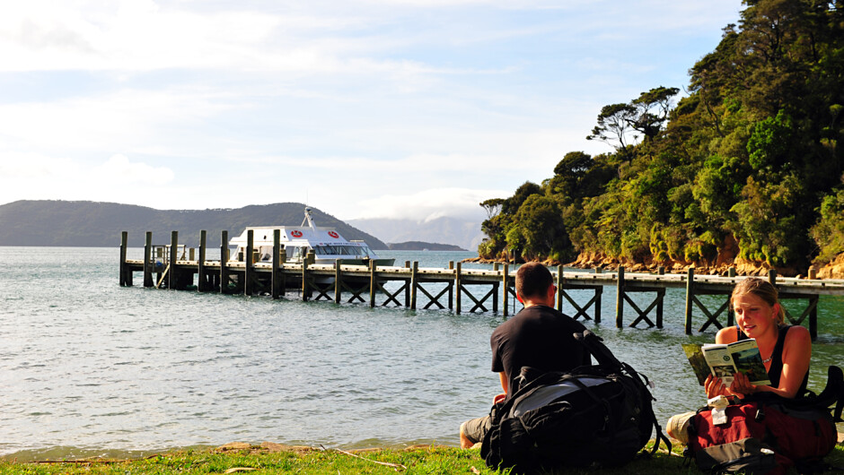 Your adventure will begin as you cruise north from Picton as we head towards Ship Cove your skipper will give you a live commentary. There is plenty of historical information at Ship Cove before you climb away from the beach through native forest regenerating beneath a high canopy of trees. The forest includes manuka, kanuka, five finger and tree ferns and is home to many native New Zealand bird species, When you reach Tawa Saddle, stunning views of the Queen Charlotte Sound spread out before you. The track then drops into Resolution Bay and follows an old bridle path into Endeavour inlet. Furneaux Lodge at the head of the Endeavor Inlet is your destination. Here you can buy drinks and meals and relax before boarding your cruise vessel.