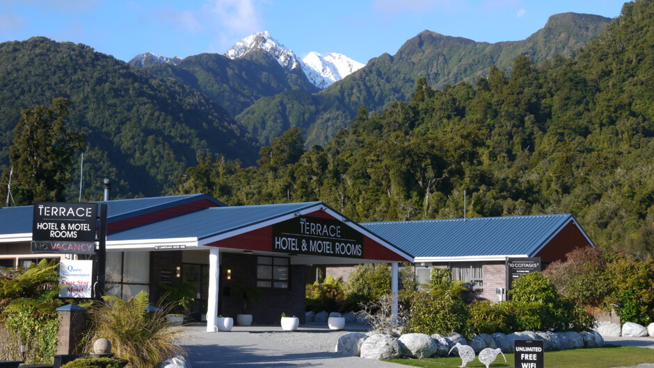 The quality family owned Hotel and Apartment style accommodation in the centre of Franz Josef is the ideal choice for a few nights holiday in spectacular Franz Josef. Our accommodation is set amidst views of snow capped mountains and rainforest covered hills, along with views of the Croz Glacier and the Franz Josef Glacier Valley. Please note not all rooms offer views. We also offer unlimited free WIFI so you can share the photos you have taken and stay in contact with friends and family while enjoying Franz Josef Glacier.