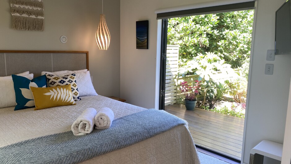 The Bay House is a unique 'island style' retreat blending sensitively into its natural West Coast environment. There are 2 x beachfront studios and 2 x one bedroom beachside garden suites on site - contemporary coastal décor creates a sense of quiet understated 'barefoot luxury' with natural interior textures complementing the spectacular views. Slightly elevated and only 15 metres from the oceans edge the property enjoys commanding views of the popular surf break, islands and the sandy bay below. Plenty of outdoor activities to enjoy on the doorstep: surfing lessons, The Kawatiri Coastal Trail, beach & coastal walks, the Fur Seal Colony, or simply relax and unwind in our little corner of Eden.