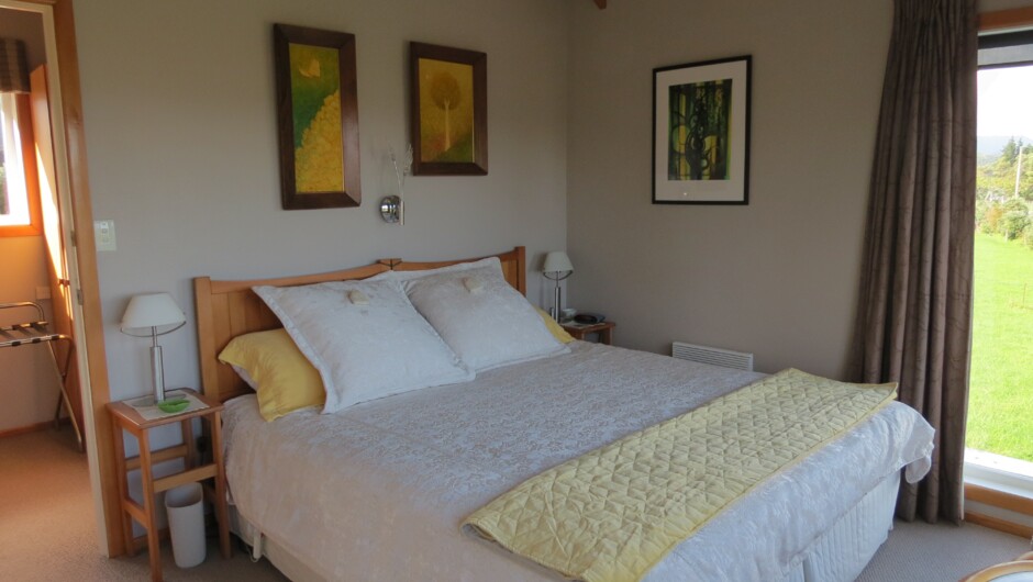 The Green House is the home of Tish and Andrew. It's a comfortable well furbished two storey home. The Seascape room looks over the Coromandel Harbour. The Ranges Room looks over our garden and to the Coromandel Ranges. It has its own private deck. The sitting room has both views. Both bedrooms have their own bathrooms.