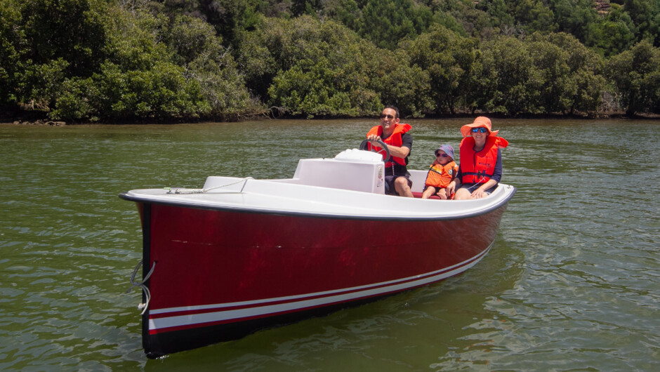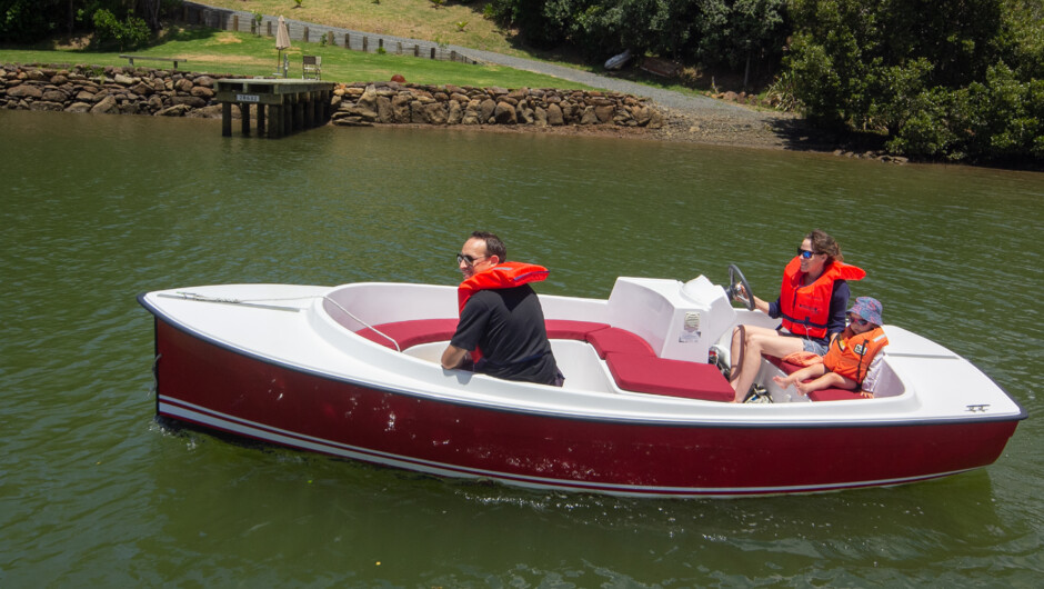 Our electric boats are very easy for complete beginners to steer and our staff are always on hand to provide help and guidance if you need it. The sheltered Kerikeri River winds through beautiful scenery, interesting boats and historic attractions. There's even a pub, cafe and museum which you can visit by boat.