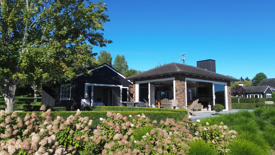 We are now able to offer our newly completed stand alone Chalet called The Oarhouse with a much envied aspect overlooking Lake Karapiro. It has two suites each with either one Californian bed plus one single or three single beds for up to 6 guests. Each suite has its own en-suite. There is a large lounge / dining room with schist fireplace, full kitchen, separate laundry, carport and extensive decking overlooking the lake. We feel The Oar House would not be out of place amongst New Zealand’s finest.