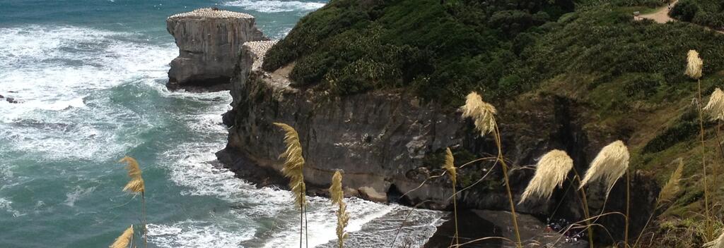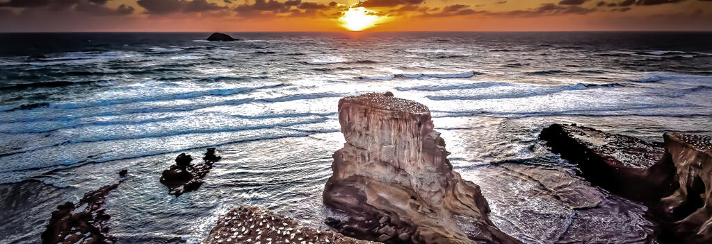 Muriwai is an impressive coastline with cliff-top trails to a huge gannet colony, with easy access and viewing platforms that let you get up close.
