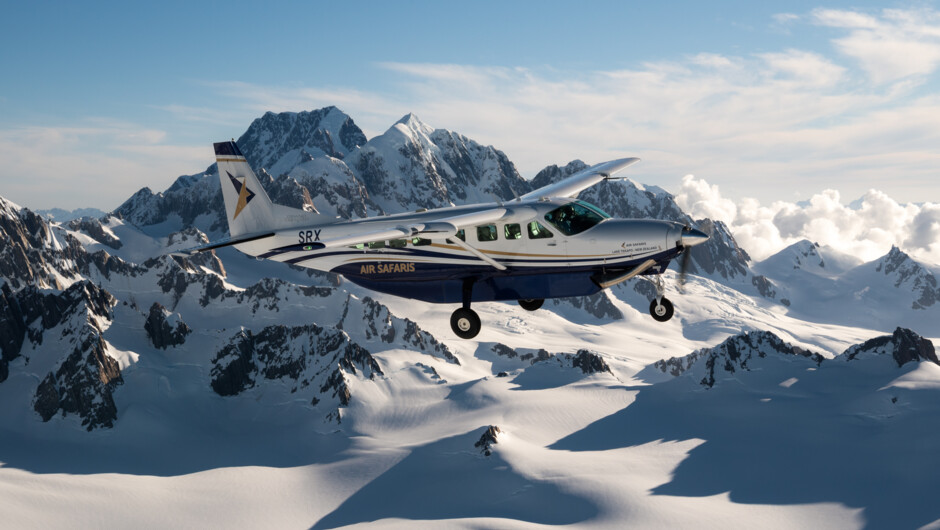 The Grand Traverse departs hourly from Air Safaris’ base at Lake Tekapo airport. Flights also depart from Glentanner Park (near Mt Cook) with inter-airport options available for tour groups.