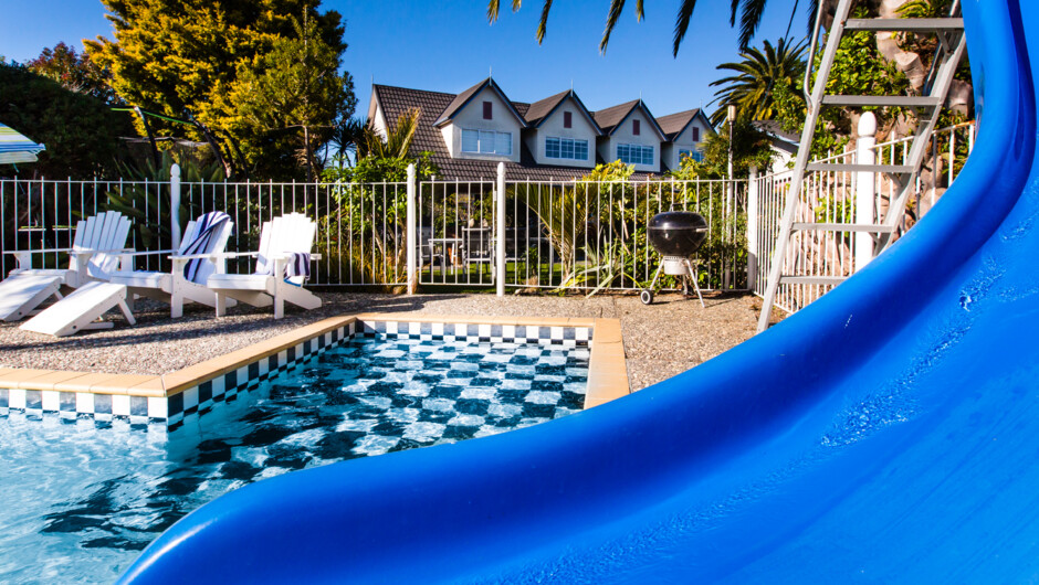 Large native garden setting, stylishly refurbished 20 ground floor studio, 1, 2 or 3 bedroom luxury apartments, ideal for long stays. All with contemporary fully equipped kitchens. Heated out-door swimming pool with slide (Oct-May), private spa pool, Sky TV, games room free internet and PS3, playground, BBQ and spacious outdoor dining areas, breakfast available, 500 metres to supermarket, Taradale shopping centre, cafes, restaurants and bars.