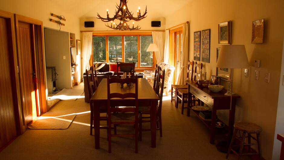 Clee Cottage is surrounded by beauty and set up for all seasons. It comfortably accommodates up to 8 people. The main cottage has two bedrooms, one a queen with en suite and the other a twin. There are 2 living rooms, one with open fire and the other with a woodburner complete with drying rack above. The kitchen and laundry are fully equipped. Just outside the back door are 2 further cottages, each with queen bed and en suite. Extra features include a large outdoor fireplace, a choice of outside seating areas and a double garage complete with ski racks and beer fridge. Quality linen, firewood and basic pantry items are included and the established grounds offer peace and privacy with excellent walking and biking tracks across the road.