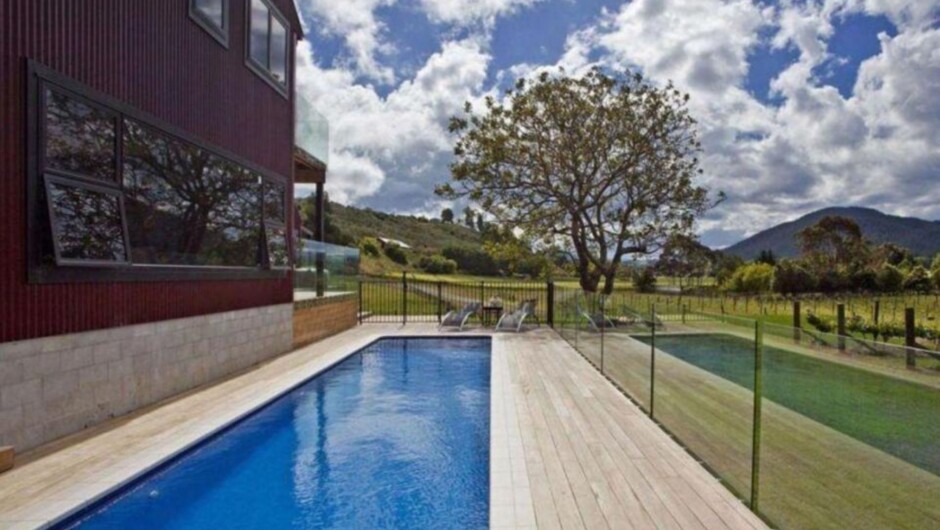 Kiwiesque features four self-contained units; all including an en-suite bathroom, kitchenette and a private deck which looks out across the vines. Lodge suites also get the use of a communal lounge area, and spacious outdoor entertainment space featuring a BBQ, swimming pool, and large deck. The communal areas will be shared with other guests that have booked the Lodge Suites.