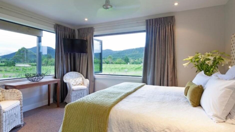 Kiwiesque features four self-contained units; all including an en-suite bathroom, kitchenette and a private deck which looks out across the vines.
