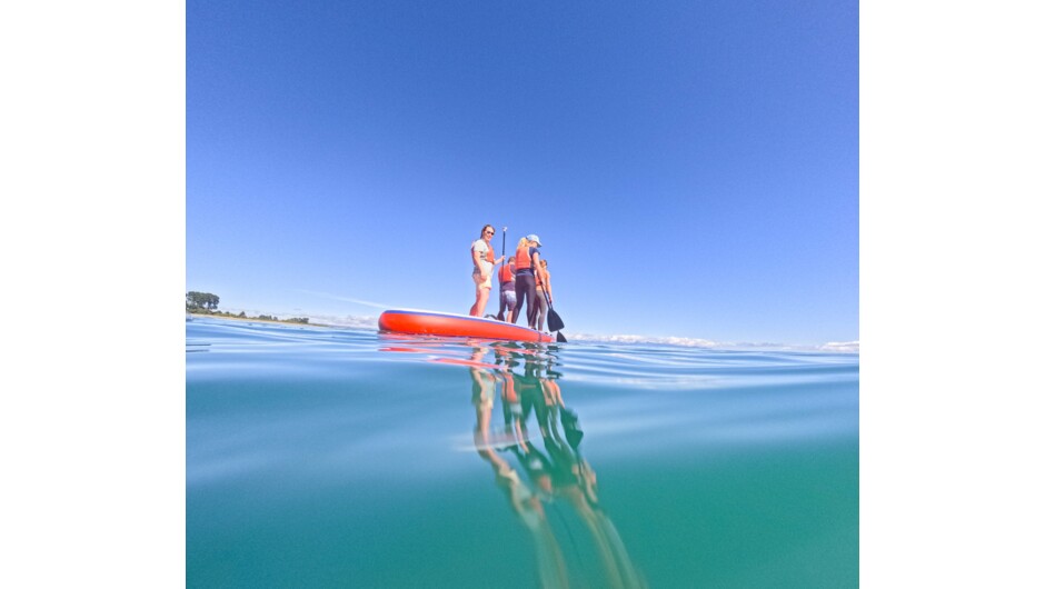This is a great option for birthdays, parties, schools or businesses that want a real hoot, fun and games in our beautiful bay at Tãhunanui beach in Nelson. Learn how to paddle in unison, use a board for some balancing challenges, wipe outs or enjoy a floating platform in the sunshine. Suitable for all ages, the Big Tahuna is suitable for up to 10 children (intermediate/junior) or six to eight high school aged kids or adults. We can also take the Big Tahuna giant SUP board to the River Maitai if it's windy too.