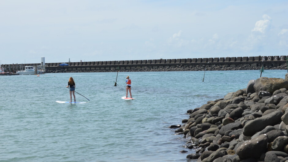 The lesson is a hour session with a skilled instructor in a calm area (most likely Ngamotu beach if weather allows). We teach everything you need to know to become a skilled Stand-Up-Paddle boarder, from how to stand up on your board properly to how to perform skilled strokes, braces and turns. If interested we can also teach how you would effectively catch a wave on your board, with detail on footing and weight distribution. This course is suitable for all skill levels so, even if you have paddle boarded before, we can tailor the course accordingly so you will still go home having learnt something new.