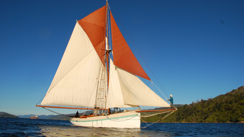 Departing the wharf in Picton, our day sails are a wonderful way to enjoy the outstanding natural beauty of the Marlborough Sounds. Setting sail for the some of our favourite places, we’ll take advantage of the wind and enjoy a day on the water.