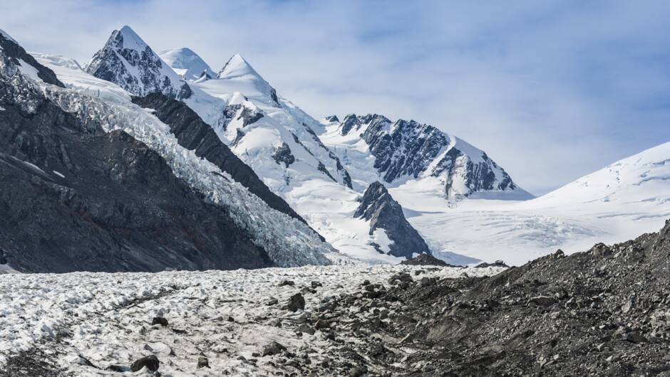 You will fly over the Aoraki Mount Cook National Park before landing on the longest glacier in New Zealand - The Tasman Glacier. Encounter the fresh alpine air as you land at around 1,200m above sea level and spend up to 2 hours in the mountains. This is a guided and interpretive trek on the 'white ice'. As your crampons bite into the ice, you will trek on gentle undulating terrain, below the highest peaks of the Southern Alps (Aoraki and Mount Tasman). On your return flight, you will fly close by the massive 1,000m high Hochstetter Icefall as your adventure nears its end. This is an unforgettable experience. Operates three times daily from October to April.