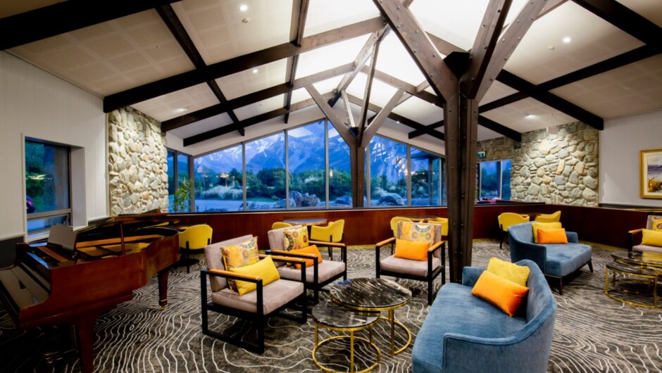 Accommodation ranges from luxurious hotel rooms with unsurpassed views of Aoraki/Mount Cook to standard rooms overlooking the Sefton mountain range. Several restaurants and bars offer an assortment of delicious dining options with spectacular views from every seat. Experience world renowned activities, including a cruise amongst glaciers, explore the Tasman Valley, stargaze within the International Dark Sky Reserve or be educated and entertained in the Sir Edmund Hillary Alpine Centre. Free WIFI is available to all hotel guest.