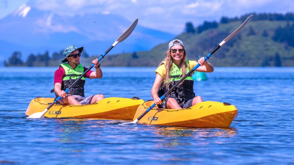 FOR YOUR SAFETY: Life jackets are included and fitted to all kayakers. It is recommended you paddle within your ability and keep within 100 metres of the shore line at all times. All equipment to be returned before darkness. Before paddling you should take the weather and wind conditions into consideration. In the event that your equipment is damaged, lost or stolen Tongariro Adventures Kayaks require that the renter pay for any cost of repair or replacement.