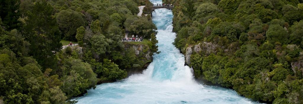 One of New Zealand's most popular natural attractions, Huka Falls is just 10 minutes from Lake Taupō. Watch as the mighty Waikato River, which measures about 100 metres wide, is squeezed through a narrow gorge and down a 20 metre drop. You can feel the thundering Falls up close on a jet boat ride or marvel from a safe distance on one of the many viewing platforms.